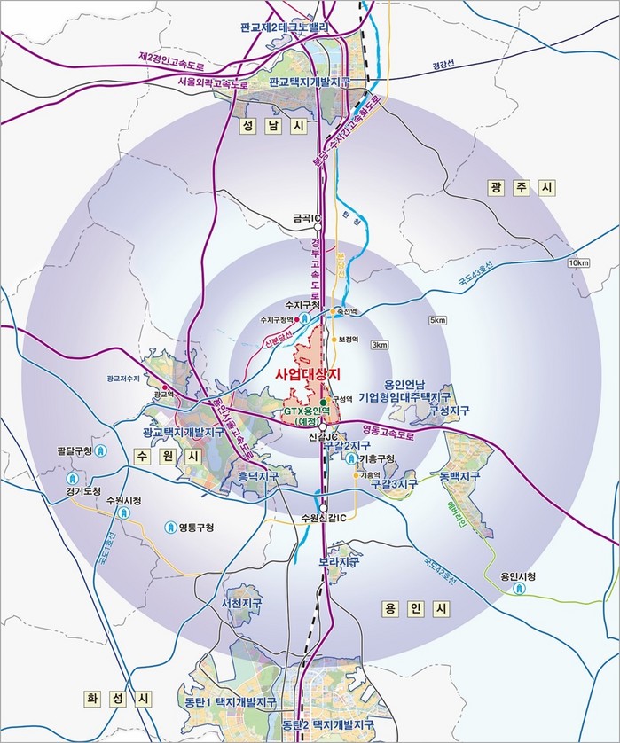 용인시는 ‘경기용인 플랫폼시티 도시개발구역 지정, 지형 도면 및 사업인정’을 5일 고시했다.