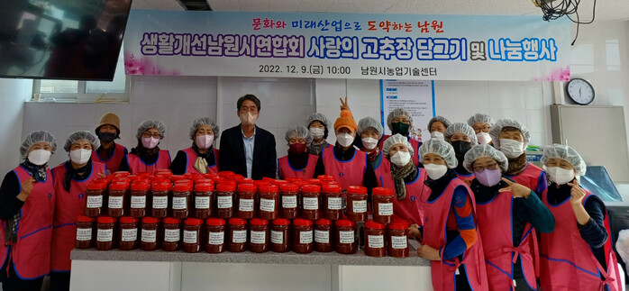 [로컬세계=이태술 기자]전북 남원시농업기술센터(소장 고인배)는 9일 생활개선남원시연합회원 20여명이 참석한 가운데 이웃 사랑 실천을 위한 고추장 담그기 및 나눔 행사를 실시했다.