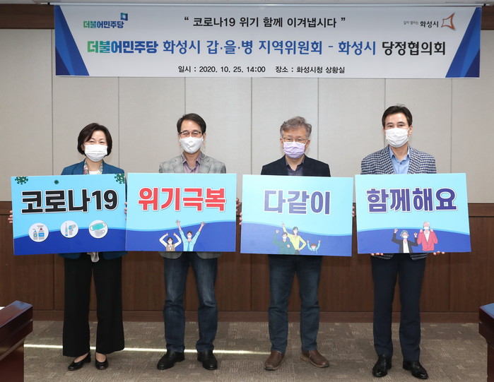 [로컬세계 고용주 기자]더불어민주당 화성시 갑을병 지역위원회(위원장 송옥주, 이원욱, 권칠승)와 화성시(시장 서철모)는 25일 오후 2시 시청 상황실에서 2020년 4분기 당정협의회를 개최했다.