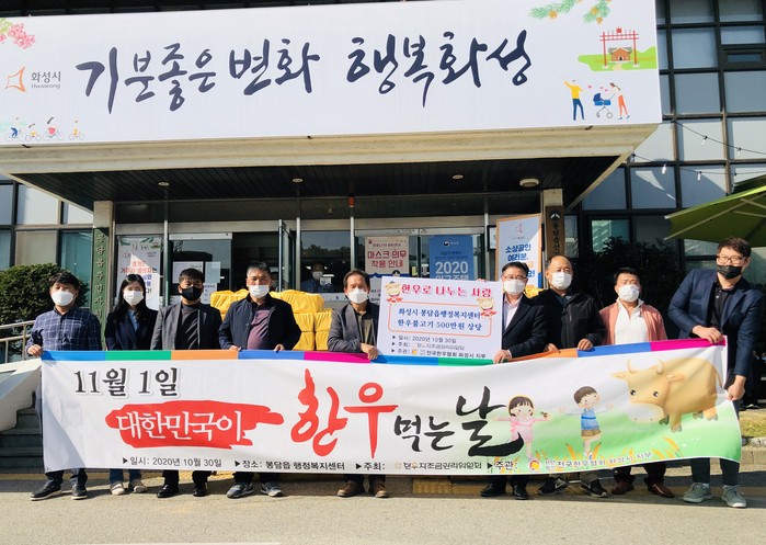 [로컬세계 고용주 기자]전국한우협회 화성시지부는 30일 오후 봉담읍행정복지센터에서 저소득층 60가구를 대상으로 '사랑의 한우나눔' 행사를 실시했다.