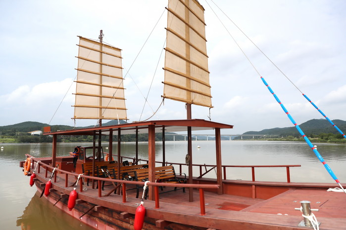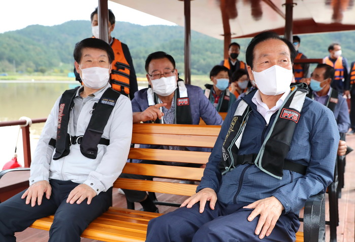 | ▲김주수 군수(오른쪽)가 청년통신사선 율정호를 시승하고 있다. |