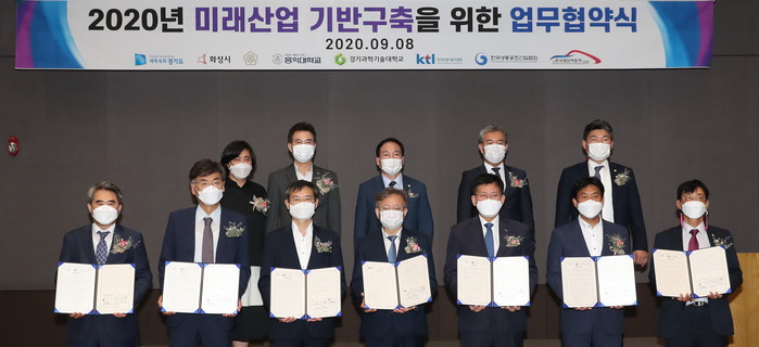 시는 8일 신텍스에서 권칠승 국회의원, 경기도, 한국산업기술시험원, 홍익대학교, 경기과학기술대학교, (사)한국첨단자동차기술협회, 한국냉동공조산업협회 등 7개 기관과 ‘산업혁신기반구축 업무협약’을 체결했다.