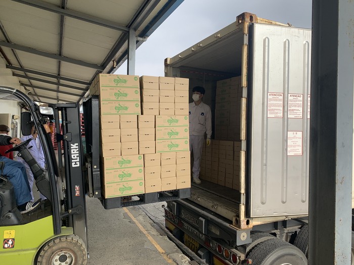 | ▲17일 부산우유 울산공장에서 호주로 수출될 농협요구르트 제품이 차량에 실리고 있다. |