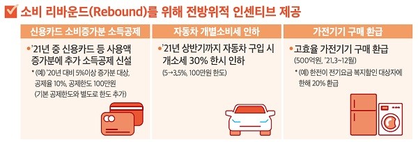먼저 소비의 경우 코로나 방역상황에 따른 제약을 감안한 소비진작책에 주력한다.