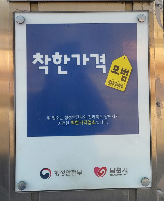 최경식 남원시장은 “경기 불황과 고물가에도 낮은 가격을 유지해 물가 안정에 동참해 준 착한가격업소에게 진심으로 감사드린다”며 “앞으로 더 많은 착한가격업소가 생겨나 시민들이 부담 없이 맛있는 음식과 질 좋은 서비스를 제공받기 바란다”고 말했다.