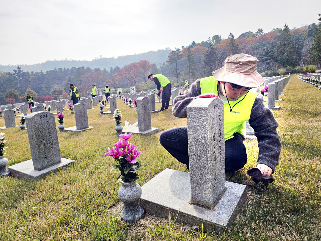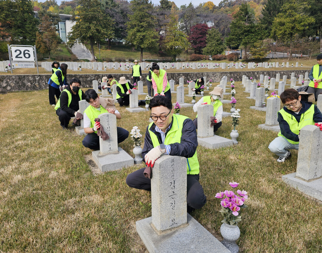 임직원들은 현충탑 참배 후 묘역의 비석을 닦고, 잡초를 제거하는 등 환경정화 활동을 하며 호국영령의 숭고한 정신을 기렸다.