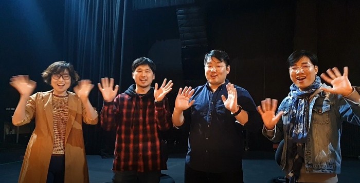 | ▲왼쪽부터 매홀고 교사 유수미, 음향감독 임승택, 조명감독 홍준석, 무대감독 이재근.(오산시 제공) |