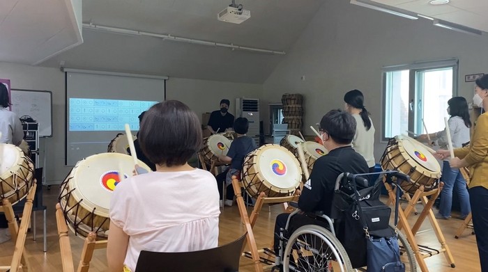 오랜만에 대면으로 진행한 음악치료 난타프로그램에 참석한 구모씨는 “그간 기분도 우울했는데, 다시 만나서 수업하니까 활기 넘치고 너무 좋다”고 활짝 웃으며 소감을 전했다.