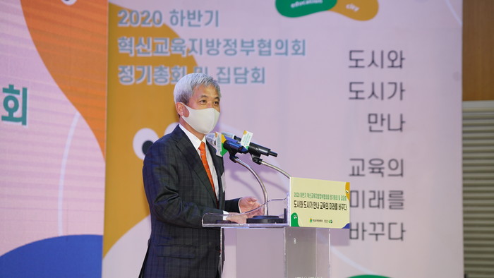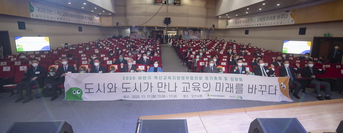 [로컬세계 고용주 기자]전국 53개 지방정부가 참여한 혁신교육지방정부협의회 2020년 하반기 정기총회가 17일 오후 회장 도시인 경기도 오산시(시장 곽상욱)에서 열렸다.