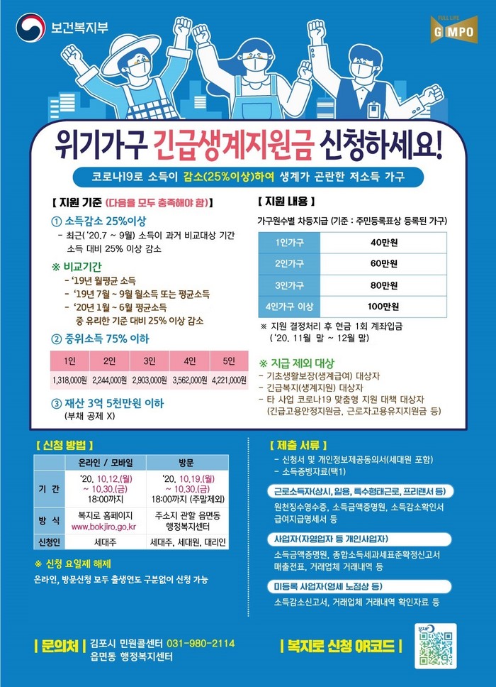[로컬세계 김병민 기자]경기 김포시가 코로나19로 인한 실직, 휴·폐업 등 소득 감소(25% 이상)로 생계가 어려워진 가구에 지원하는 ‘위기가구 긴급생계지원’사업을 지난 주 온라인 신청접수를 시작한데 이어 지난 19일부터 현장접수를 시작했다고 20일 밝혔다.