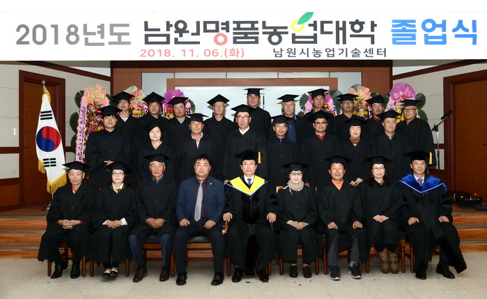 남원명품농업대학 학장인 이환주 시장은 졸업장과 공로상을 시상하고 축하 인사말을 통해“수입농산물과 고령화로 농업, 농촌이 어려운 것이 사실이다”며“졸업생들이 힘을 모아 지역농업경쟁력 향상에 힘써줄 것”을 당부했다.