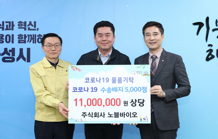 정남면 백리에 위치한 의료기기 제조업체인 ㈜노블바이오(대표 백계승)는 17일 화성시에 코로나19 검체 수송배지 5000개(약 1100만원 상당)를 기탁했다.