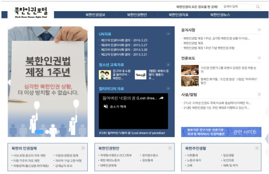 사이트에서는 △유엔(UN), 각국 정부 및 우리 정부의 공식 발표 자료 △정부와 민간의 연구 및 영상 자료 △북한인권 관련 최신 이슈 및 이를 이해하는 데에 필요한 기초 정보 △북한인권 관련 최근 기사 등을 한 곳에서 확인할 수 있다.
