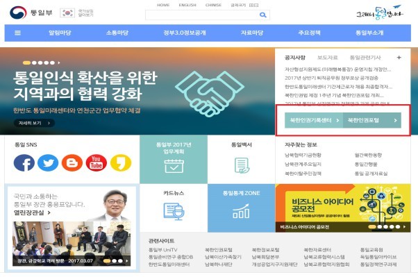 [로컬세계 고용주 기자]통일부가 우리 국민들이 북한인권 문제에 보다 많은 관심을 갖고 관련 자료를 손쉽게 접근할 수 있도록 누리집(www.unikorea.go.kr/nkhr)에 북한인권포털을 개설했다고 22일 밝혔다.