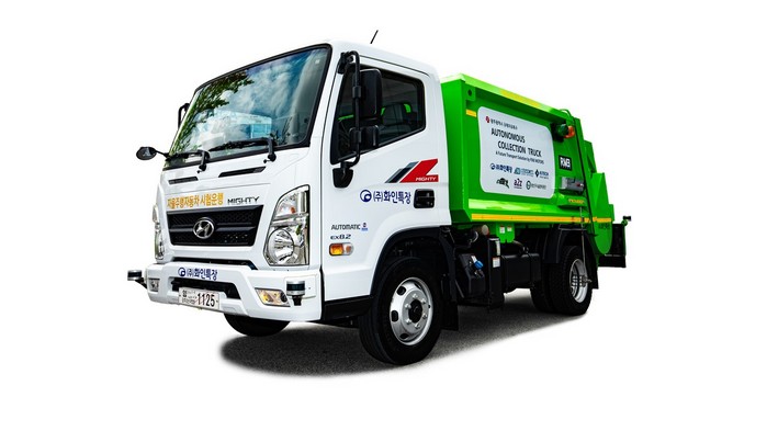 | ▲5G 기반 무인특장차 자율주행 기술 협력(산업단지용무인폐기물수거차) |