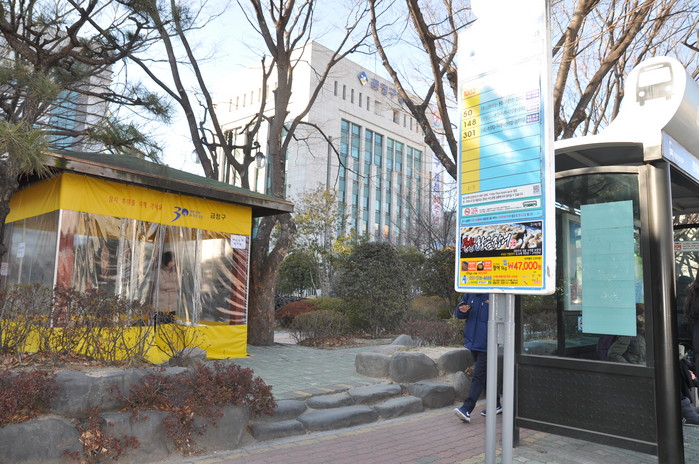 8일 부산 금정구(구청장 원정희)는 지난 7일 지역내 버스정류소 2곳(도시철도 장전역, 금정구청 버스정류장)에 추위 대피소를 시범 설치했다.