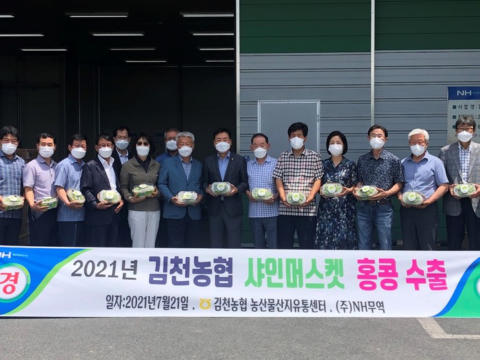 농협(회장 이성희) 경제지주 계열사인 NH농협무역이 21일 김천농협 산지유통센터에서 올해 생산된 샤인머스캣을 홍콩으로 수출하기 위해 선적식을 실시했다고 밝혔다.