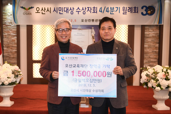 이희수 오산시 시민대상 수상자회 회장은 “올해가 오산시 시승격 30주년의 해로 앞으로 오산시 100년을 위해 우수한 인재를 발굴하고 양성하는 데 보탬이 되겠다”며 “오산교육재단에서 앞으로 더욱 우수한 인재를 발굴하고 양성하는 데 많은 노력을 해 달라”고 전했다.