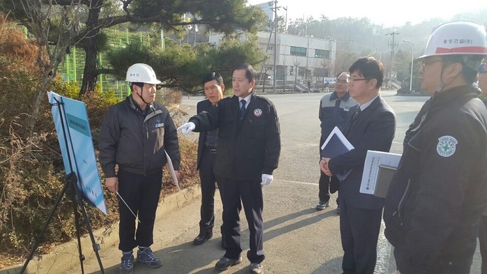 | ▲11일 주요 폐기물처리시설에 대한 현장점검에 나선 황진용 환경녹지국장이 안전한 폐기물처리시설 관리를 당부하고 있다.(창원시 제공) |