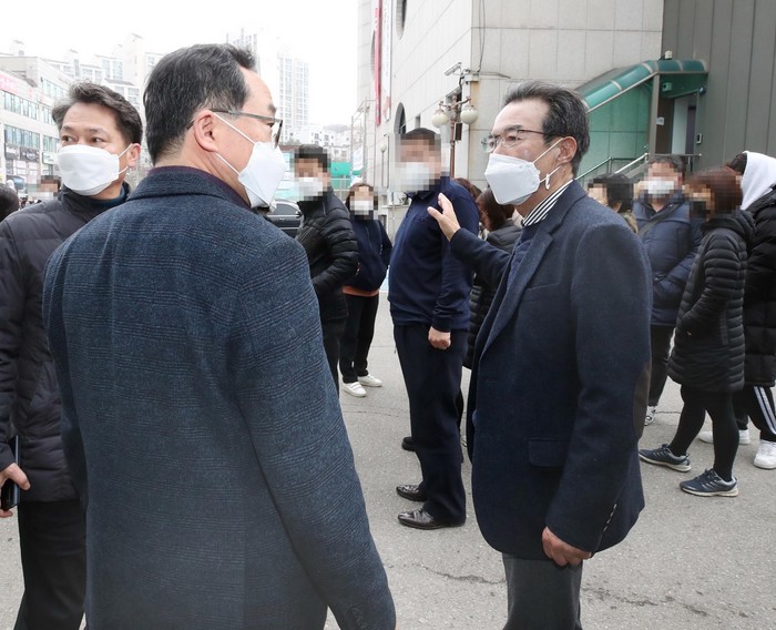 | ▲이성희 농협중앙회장(오른쪽)이 1일 경기도 용인시 구성농협 하나로마트 마스크 판매현장을 방문하여 마스크 공급 상황 등을 점검했다. |