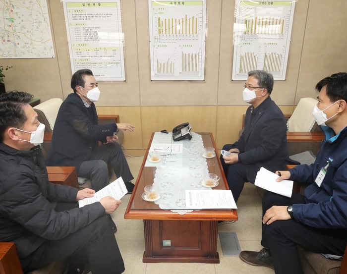 | ▲이성희 농협중앙회장(왼쪽 두 번째)이 1일 경기도 성남시 농협 성남유통센터를 방문하여 마스크 공급 상황 등을 점검했다. |
