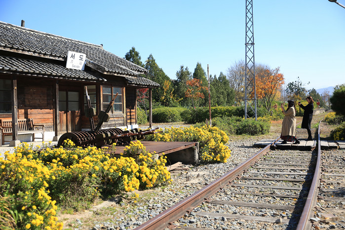가을향이 물씬 느껴지는 국화꽃과 서도역, 그리고 주변의 농촌이 어우러진 인상적인 풍경은 이 곳을 찾는 사람들이 그 들의 추억을 아로새겨 기억속에 영원히 간직하게 만든다.