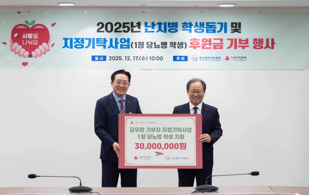 □ 이날 전달식에는 부산광역시교육청 김석준 교육감, 부산사랑의열매 이수태 회장이 참석했다.