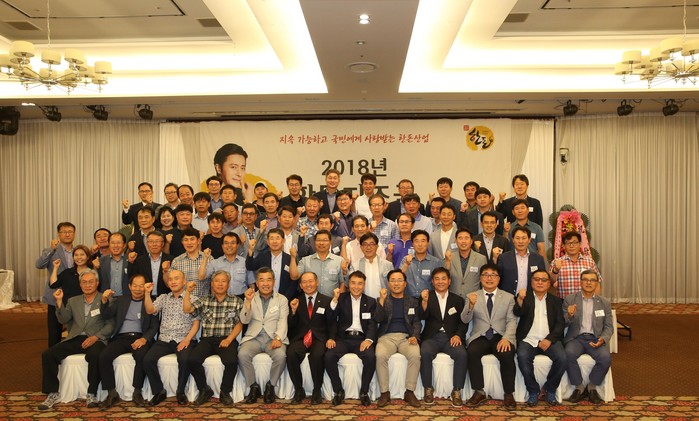 | ▲25일 ‘2018년 한돈자조금 사업설명회’에 참가한 전국 한돈자조금 대의원, 한돈협회 지부장, 양돈농협조합장 등 관련 기관 종사자들이 중장기적인 한돈산업에 대한 토의 전 파이팅을 외치고 있다. |