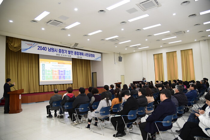 [로컬세계=이태술 기자]전북 남원시는 6일 문화와 미래산업으로 새롭게 도약하는 남원시의 미래를 그리기 위한 '2040 남원시 중장기발전 종합계획' 시민공청회를 개최했다.