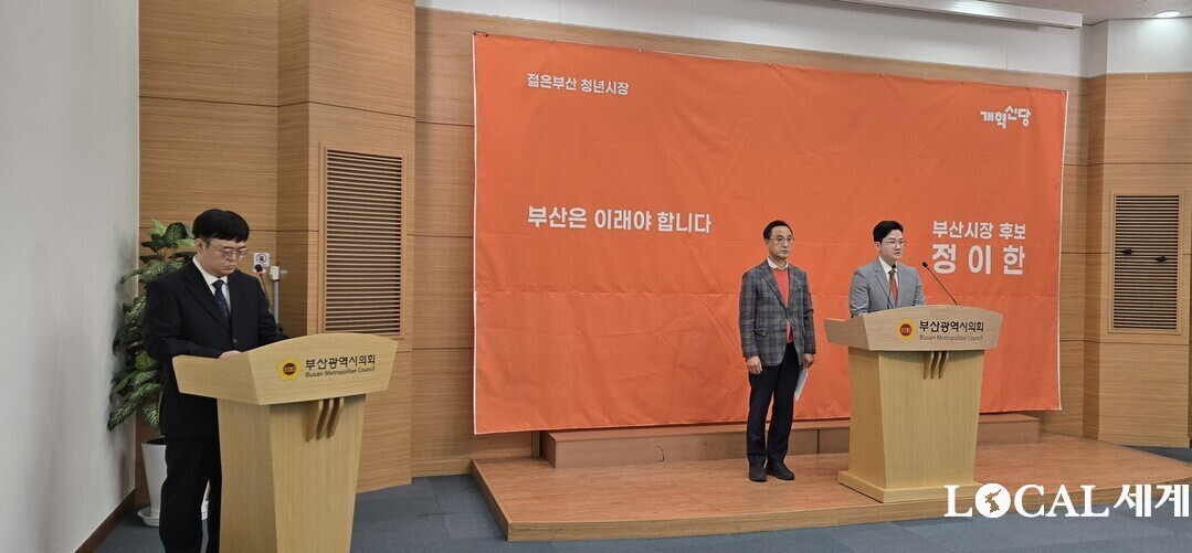 [로컬세계 = 글.사진 박종순 기자] 오는 23일 부산시의회 3층 브리핑룸에서 개혁신당 부산시장 후보 정이한이 기자회견을 가졌다.