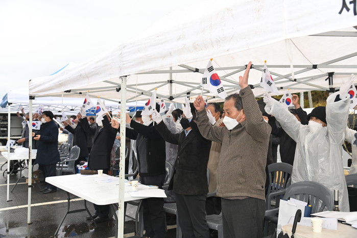 [로컬세계 이태술 기자]전북 남원시 사매면 계명당고개 3・1공원 기념탑에서 11일 2시부터 광복회 전북지부 주최로 책 저자인 이태룡박사와 인천대학교 교수 및 후손, 사매면민 등 60여명이 참석한 가운데 뜻 깊은 헌정식을 가졌다