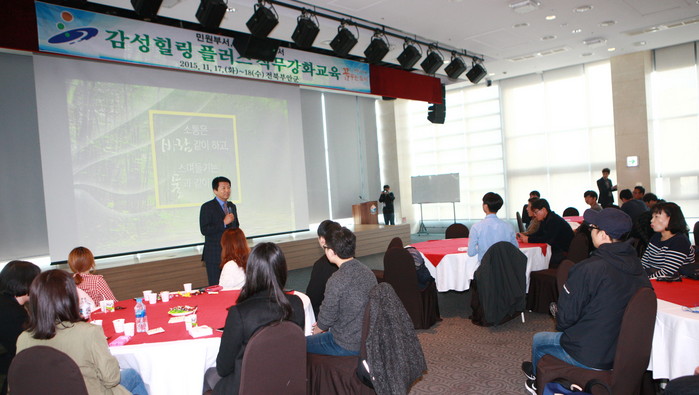 김 군수는 17일 모항 해나루 가족호텔에서 안산시청 공무원 140여명을 대상으로 ‘소통은 바람같이 하고, 스며들기는 물과 같이 하라’를 주제로특강을 진행했다.
