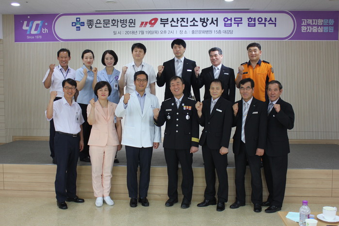 이날 맺은 업무협약으로 부산진소방서는 좋은문화병원 관계자를 대상으로 안전교육과 훈련을 돕는 등 전문성을 제공하게 된다.