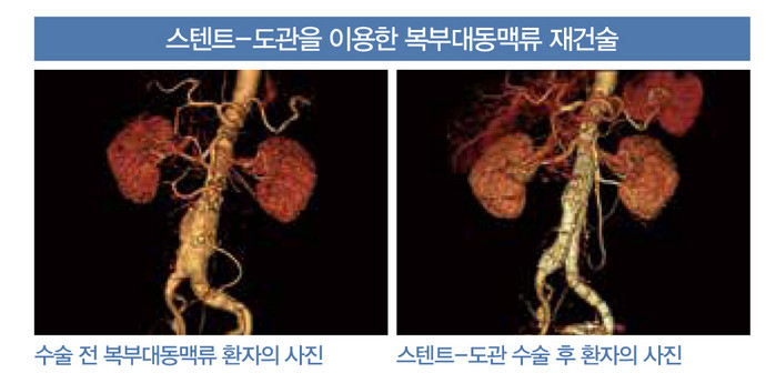 동맥류는 정상 동맥보다 직경이 50% 이상 증가해 풍선처럼 부푼 상태를 말한다. 정상 복부대동맥은 직경이 2cm인데, 3cm 이상으로 팽창하면 복부대동맥류로 본다. 적절한 치료를 하지 않고 방치하면 계속 팽창하며 팽창할수록 파열 가능성도 증가한다. 4cm 이상으로 늘어나면 연간 파열될 확률이 1%, 5cm 이상이면 11%, 6cm 이상이면 26%로 급격히 증가한다. 동맥류가 파열하면 수술적 치료를 받아야 하는데, 바로 치료가 이뤄지지 않으면 100% 사망에 이른다. 조진현 교수는 “증상이 없다가도 순식간에 사망에 이를 수 있어 노인 돌연사의 주요원인으로 꼽히는 질환이다”고 설명했다.
