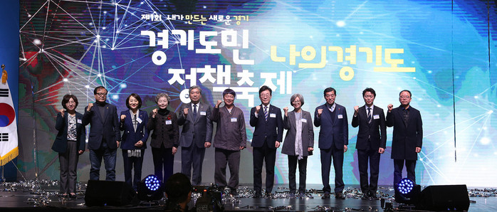 이 지사를 비롯한 내빈들이 1명씩 등장해 화면을 터치할 때마다 행사장 메인무대에 마련된 LED 대형화면에는 주민들의 참여가 늘어날수록 경기도 지도가 빛을 내며 확대되는 영상이 방영됐다.