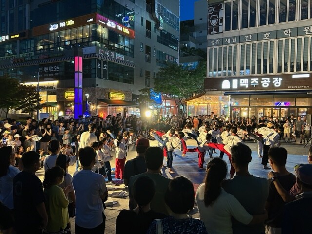 ▲기장군이 지난해 8월 정관 돌고래광장에서 진행한 거리공연 모습. 기장군 제공 |