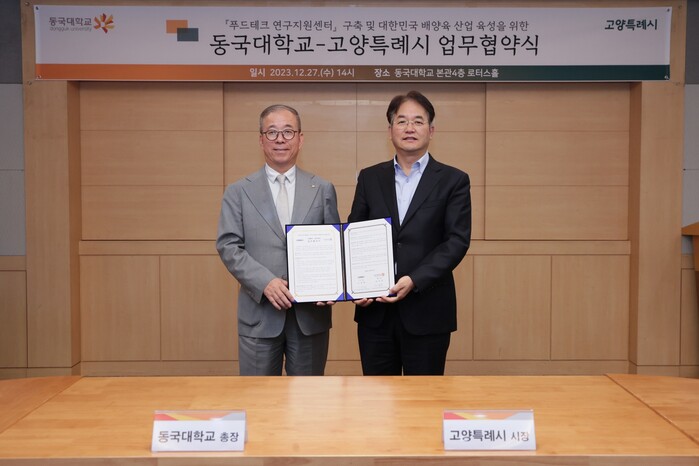 [로컬세계 = 임종환 기자]경기 고양특례시가 지난 27일 동국대학교와 ‘푸드테크 연구지원센터 구축을 위한 협력 협약’을 체결했다고 28일 밝혔다.