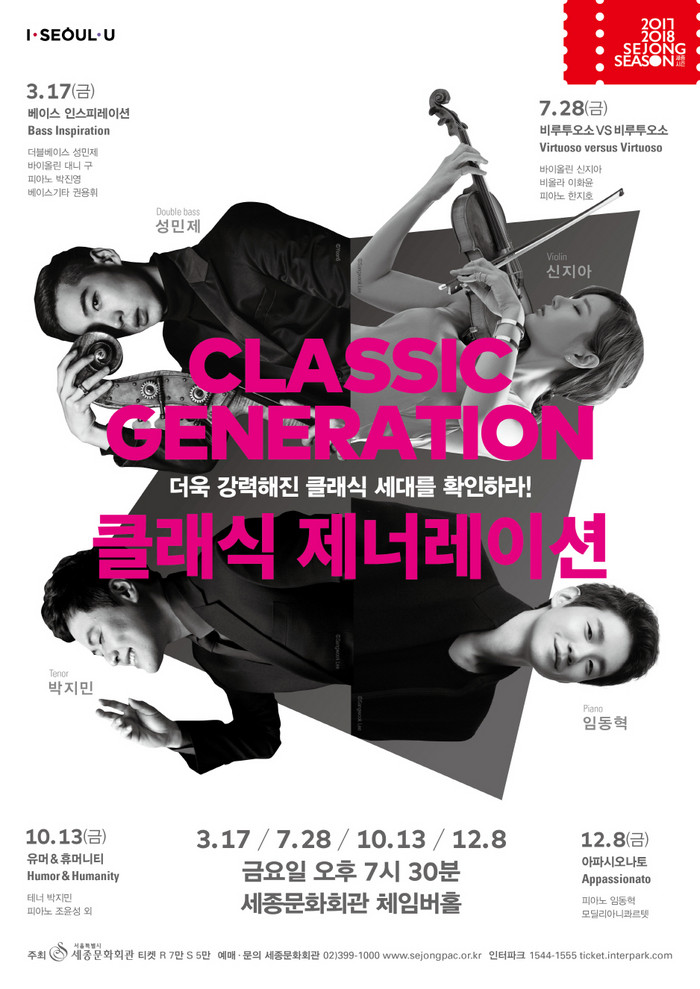 ‘클래식 제너레이션’ 공연은 세종문화티켓 및 인터파크에서 예매 가능하며 티켓가격은 5~7만원이다.