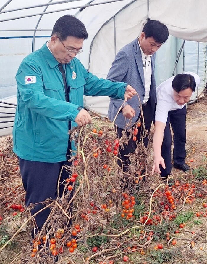 한국농수산식품유통공사 김춘진 사장은 지난 5일 전북지역본부를 방문하여 업무 현안을 점검하고, 최근 집중호우로 큰 피해를 입은 전북 익산 망성면 소재 방울토마토 생산 농가를 찾아 피해상황을 살피고 농업인을 위로했다.
