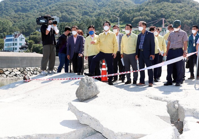 ▲ 여수 만흥항 제11회 태풍 힌남노 피해현장 방문. 전남도 제공 |