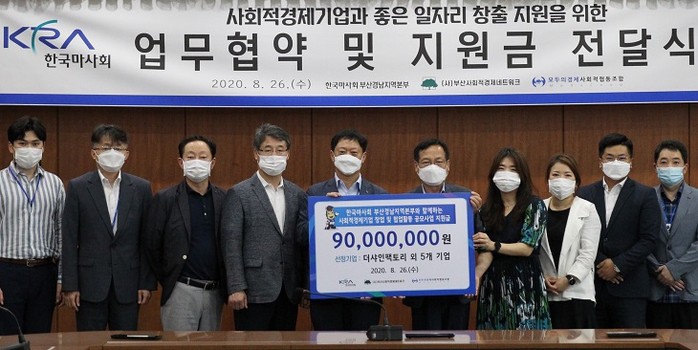 한국마사회 부산경남지역본부는 ‘부산사회적경제네트워크’와 ‘모두의경제사회적협동조합’에서 주관하는 ‘사회적경제기업 지원 공모사업’을 통해 선정된 (예비)사회적경제기업에 총 9000만원의 후원금을 전달했다고 26일 밝혔다.