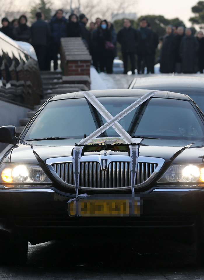 ▲고인의 시신과 영정을 실은 운구차가 떠나고 있다. 연합뉴스 |