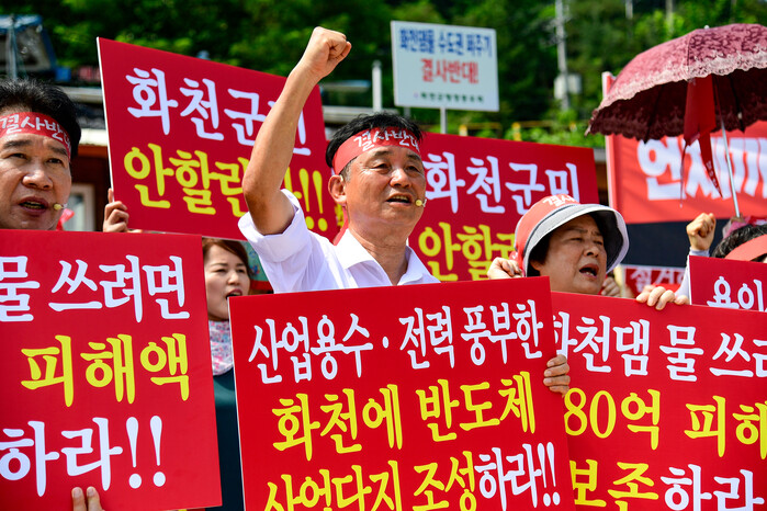 오늘 우리는 화천댐의 물을 수도권 인근 반도체 국가산단 용수로 공급하겠다는 정부의 일방적 결정에 대해 명확히 반대하는 바이다. 반도체 산업 발전은 누구나 염원하지만, 화천댐 소재지 주민들의 의견 수렴도 없이, 화천댐으로 인한 상처가 그대로 방치되는 상황에서 진행되는 일방적 정책 결정에 대해 우리의 의지를 아래와 같이 밝힌다.