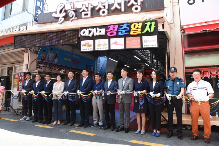 [로컬세계 맹화찬 기자]부산 남구청은 20일 용호삼성시장에서 청년 음식점 '용호삼성시장 이기대청춘열차' 개장식 행사를 가졌다고 밝혔다.