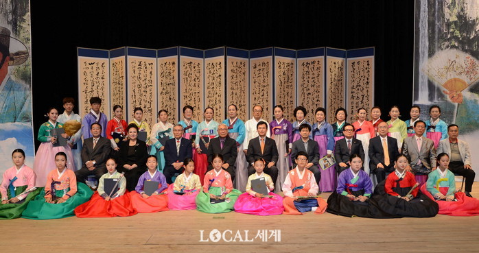 | ▲ 10월 5일 전북 남원서 개최된 제 22회 금파 강도근 판소리 경연대회에서 수상자와 관계자들이 기념사진을 찍고 있다. © 로컬세계 |