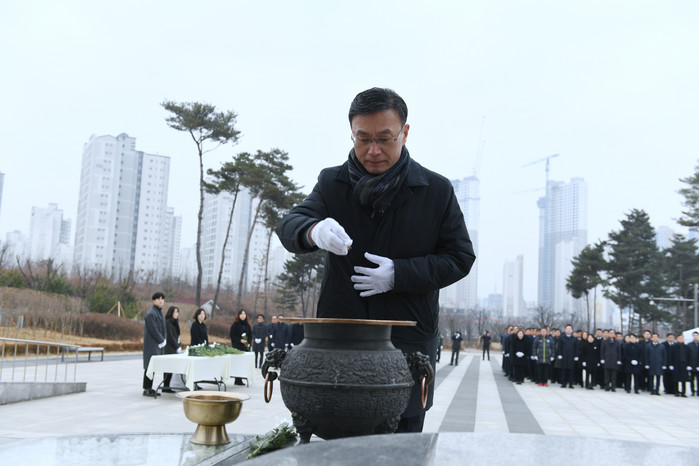 이날 정하영 시장은 신명순 김포시의회의장, 홍철호 국회의원, 김두관 국회의원을 비롯해 도의원·시의원, 보훈단체장, 기관·단체장 및 시청 간부공무원 등과 함께 참배했다.