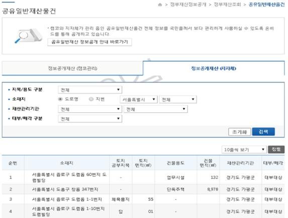정보공개는 국·공유재산 공매 시스템인 한국자산관리공사의 ‘공공자산처분시스템(온비드시스템)’을 통해 한다. ‘재산이 토지인 경우에는 소재지, 지목, 면적’, ‘건물인 경우에는 소재지, 건물구분, 용도, 건축일자, 연면적’ 등의 세부 정보를 공개한다.