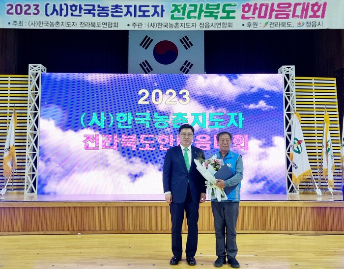 한국농수산식품유통공사 김춘진 사장은 7일 전북 정읍시 국민체육센터에서 열린 ‘2023 (사)한국농촌지도자 전라북도 한마음대회’에 참석해 농업·농촌의 발전에 기여한 유공자를 격려하고 표창장을 수여한 뒤, 농촌지도자 역할의 중요성과 탄소중립 실천을 통한 농업·농촌의 지속가능한 미래 비전을 모색했다.
