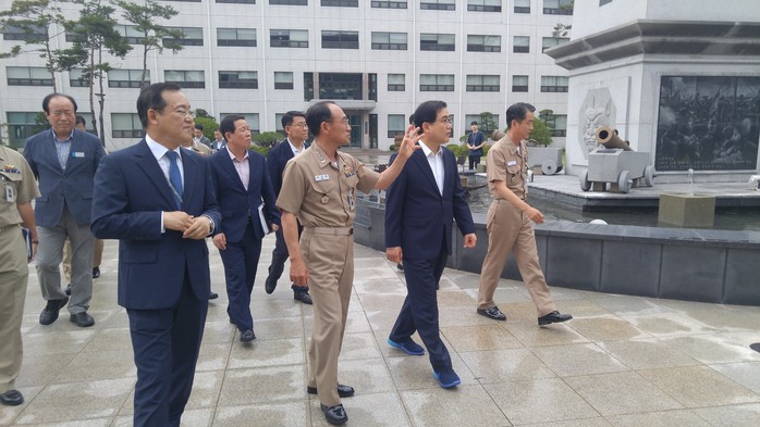 | ▲허성무 창원시장(오른쪽에서 두번째)이 5일 해군사관학교를 방문했다.(창원시 제공) |
