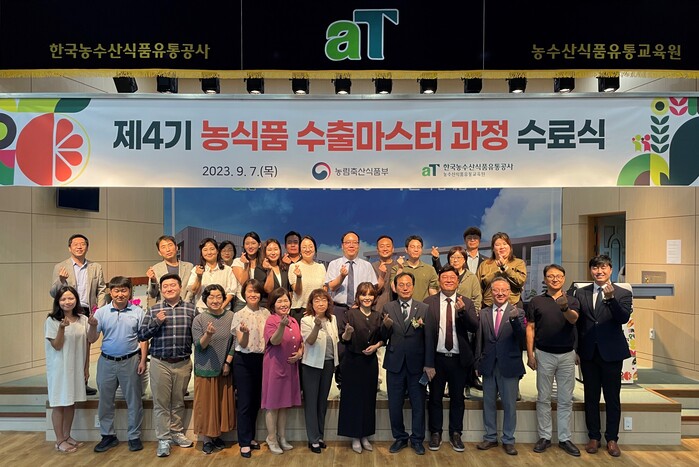 농림축산식품부(장관 정황근)와 한국농수산식품유통공사(사장 김춘진)는 7일 경기도 수원시 농수산식품유통교육원에서 ‘2023년 제4기 농식품 수출마스터 과정’ 수료식을 열어 K-푸드 수출성장에 기여할 25명의 해외 영업 전문가를 배출했다.